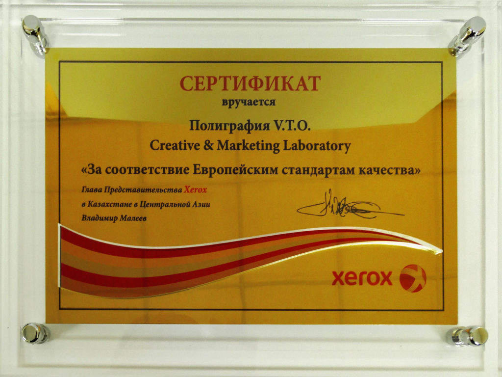 Сама же компания получила сертификат Xerox о соответствии Европейским стандартам качества.