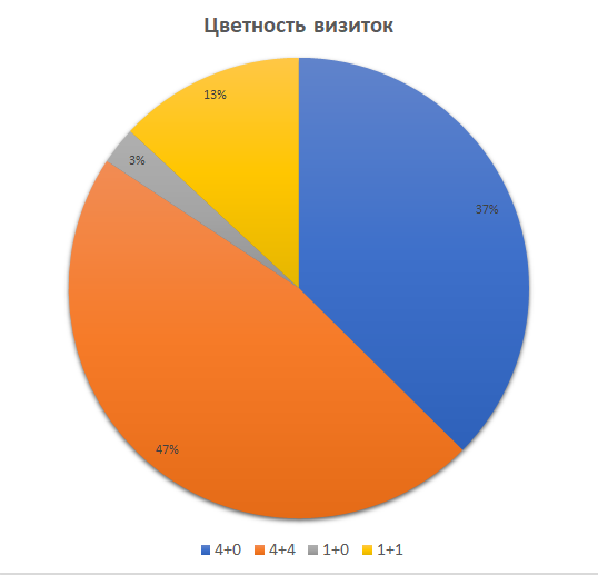 Конечно, VTO не единственная типография, которая печатает визитки в Алматы, но мы взяли на себя смелость посчитать некоторые статистические данные за прошлый год по печатаемой нами полиграфической продукции.