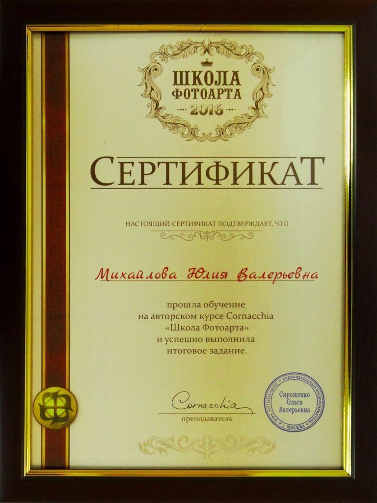 Юлия Михайлова закончила обучение в Московской Школе Фотоарта.
