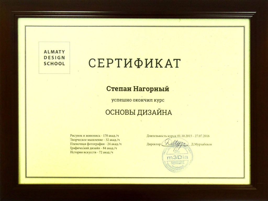 Степан Нагорный прошел обучение в «Almaty Design School».