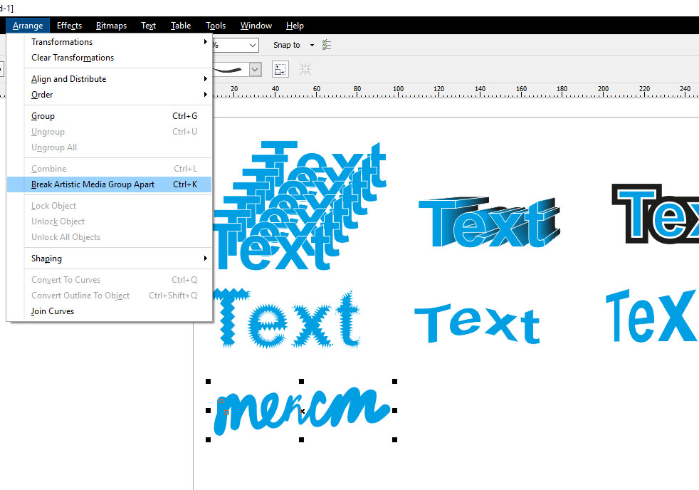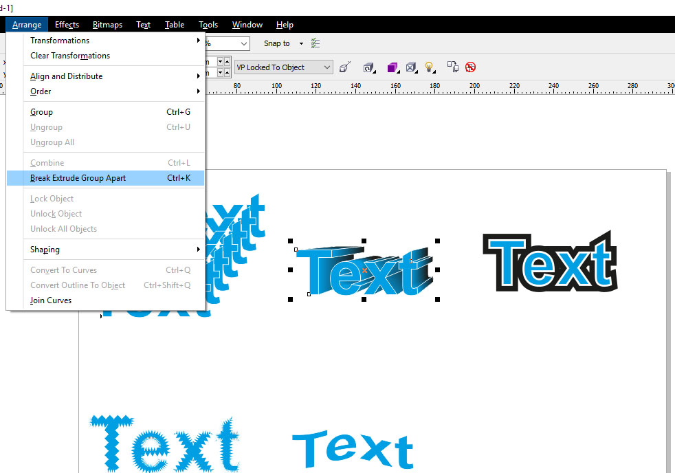Эффекты искажения. Blend (перетекание), Extrude (вытянуть), Contour (контур), Artistic Media (художественное оформление) следует разбивать.