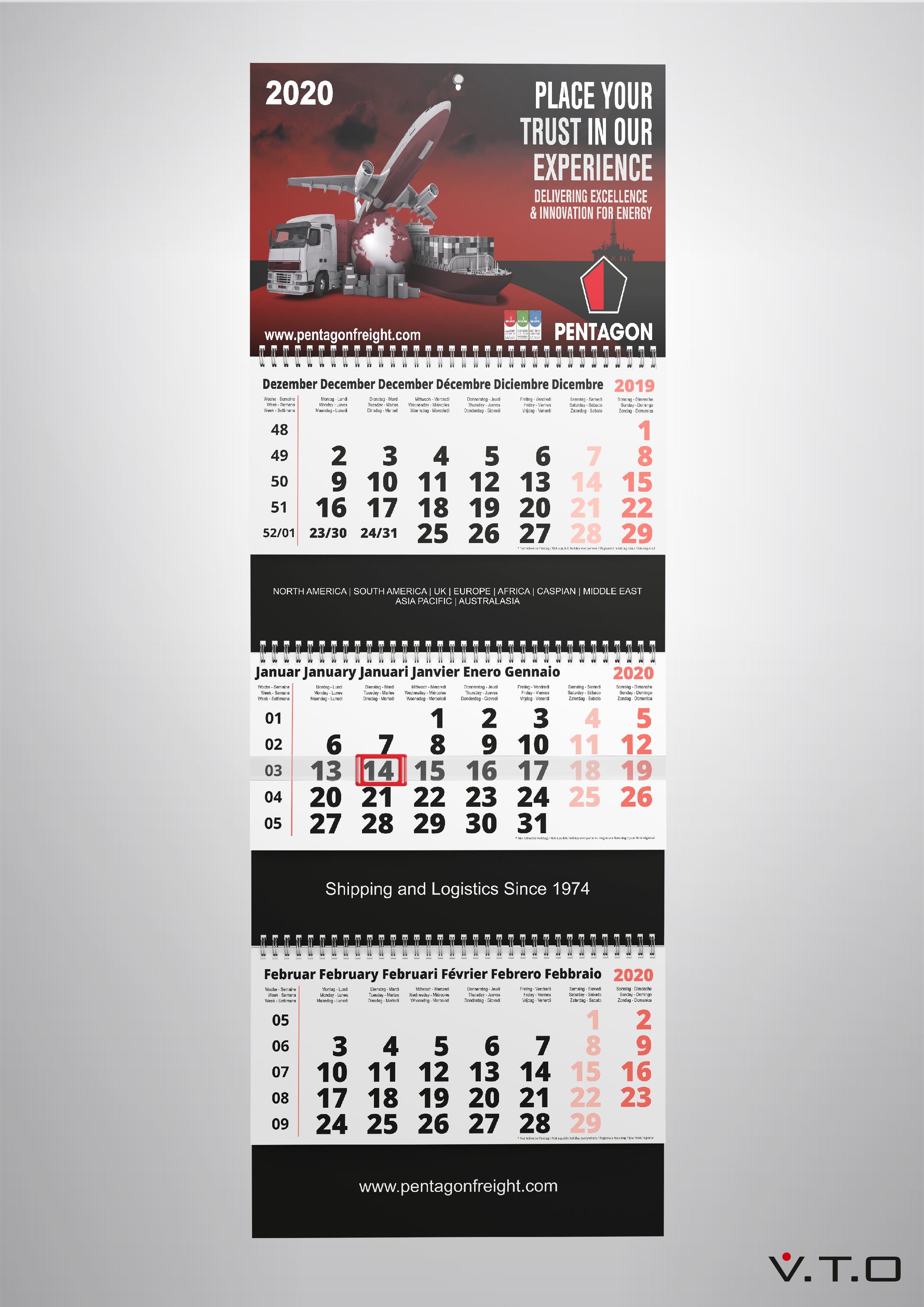 Восстановление по физическому образцу дизайна и верстка квартального календаря на 6-ти языках.