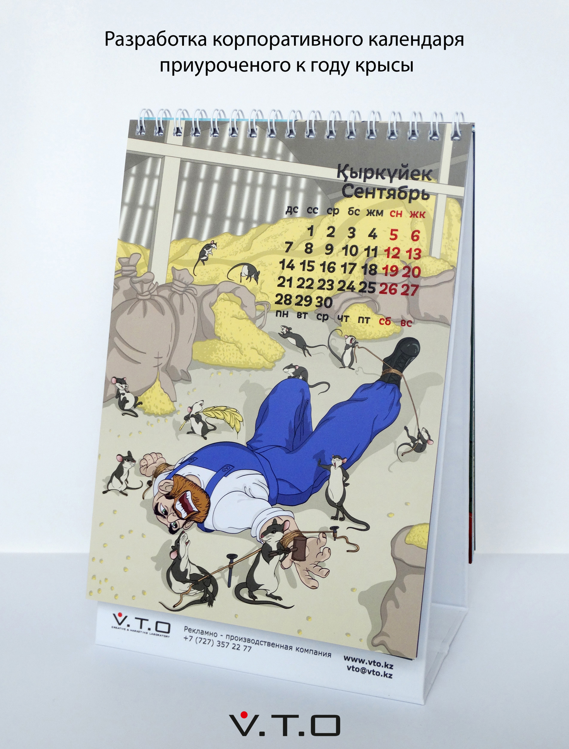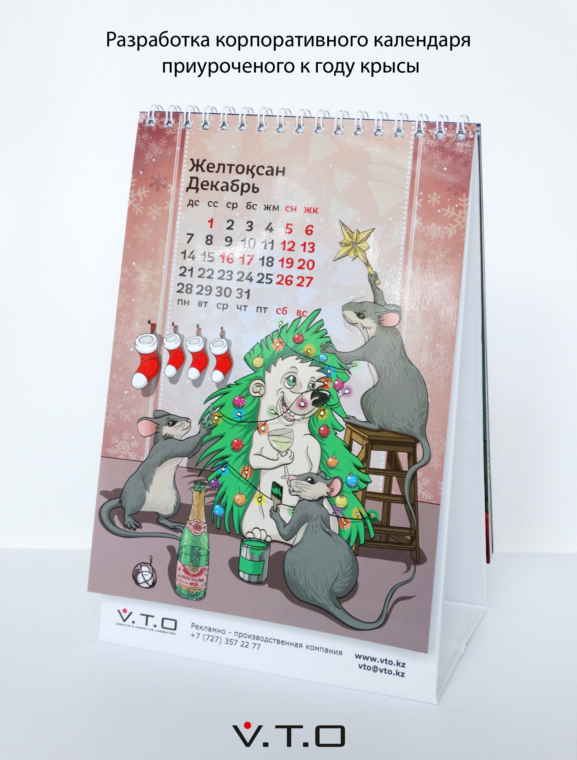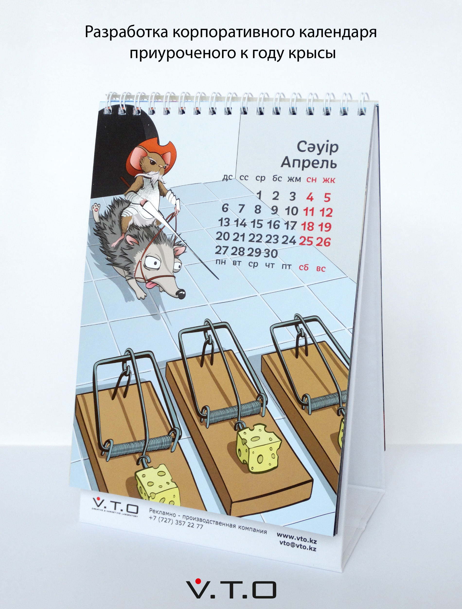 Корпоративный календарь на 2019 год для нашей компании, посвящен символу этого года – Крысам. Идеи для иллюстраций придумали наши копирайтеры. А дизайнеры воплотили их в иллюстрациях, созданных с нуля в векторном редакторе. Помимо веселых картинок, этот календарь стал своеобразной презентацией наших возможностей в производстве полиграфической продукции. На каждом листе были представлены различные виды послепечатной обработки. Более подробно о создании календаря и примененных технологиях, можно почитать здесь
