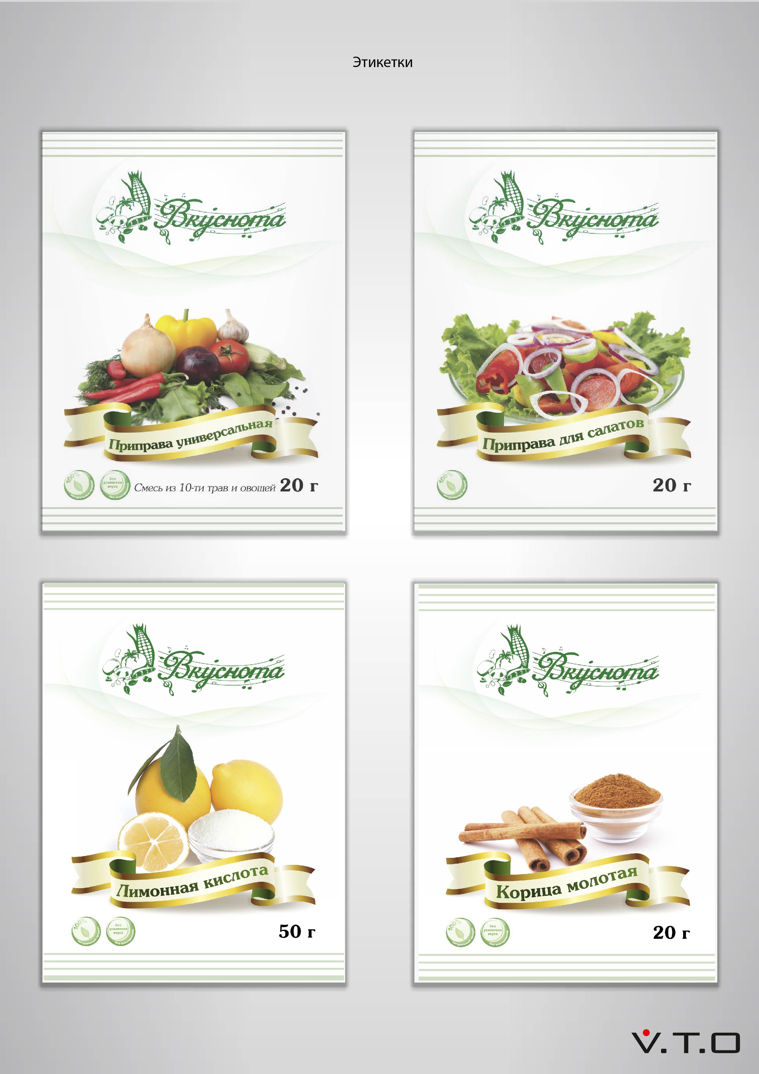 Под брендом “Вкуснота” (ударение на второй слог) выпускается консервированная продукция, а также специи и приправы. В названии обыгрываются слова “вкус” и “нота”, что и было взято за основу создания логотипа.